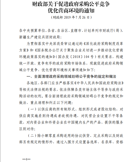 下一篇:南寧市財政局 關于進一步優化營商環境促進政府采購公平競爭有關事項的通知